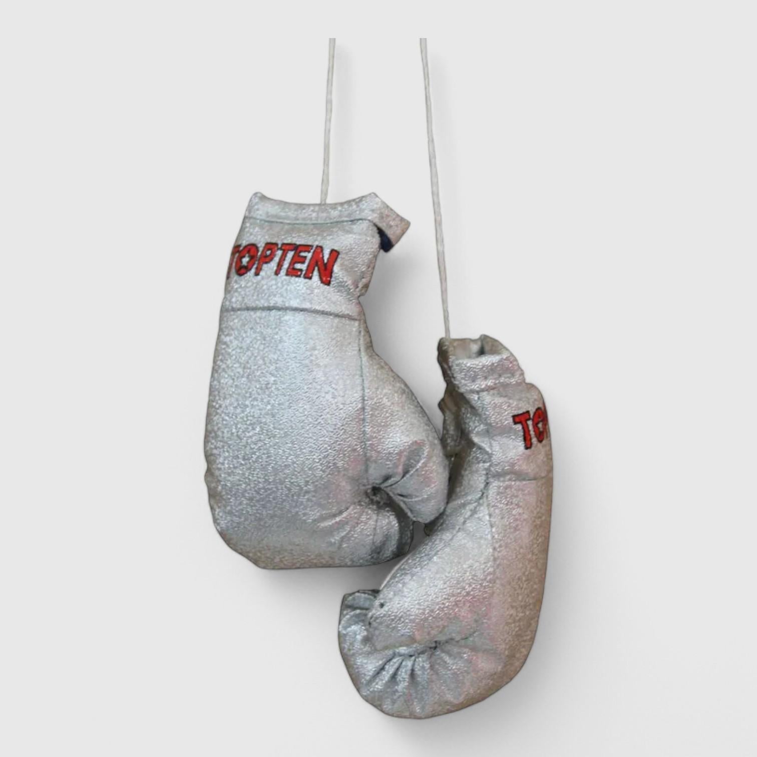TOP TEN Mini Boksehansker - Sølv laget i kunsskinn. Disse er kult å ha i speilet i bilen, hengende i vinduet eller til å feste på treningsbaggen.